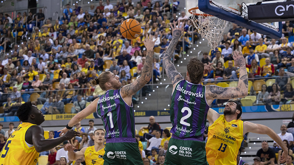Sería con la entrada de Balcerowksi y Osetkowski -13 puntos entre los dos en ese parcial- cuando el Unicaja rompería la inercia isleña, llegando a empatar la contienda Alberto Díaz con un tiro libre (17-17). A partir de ahí, se incrementó el intercambio de canastas (23-23). En el segundo asalto, el Unicaja logró adelantarse en el electrónico, aunque sería tras anotar uno de los cuatro tiros libres intentados por Balcerowski, que se mostraba muy activo en la pintura aunque desacertado desde la línea de personales (23-24).