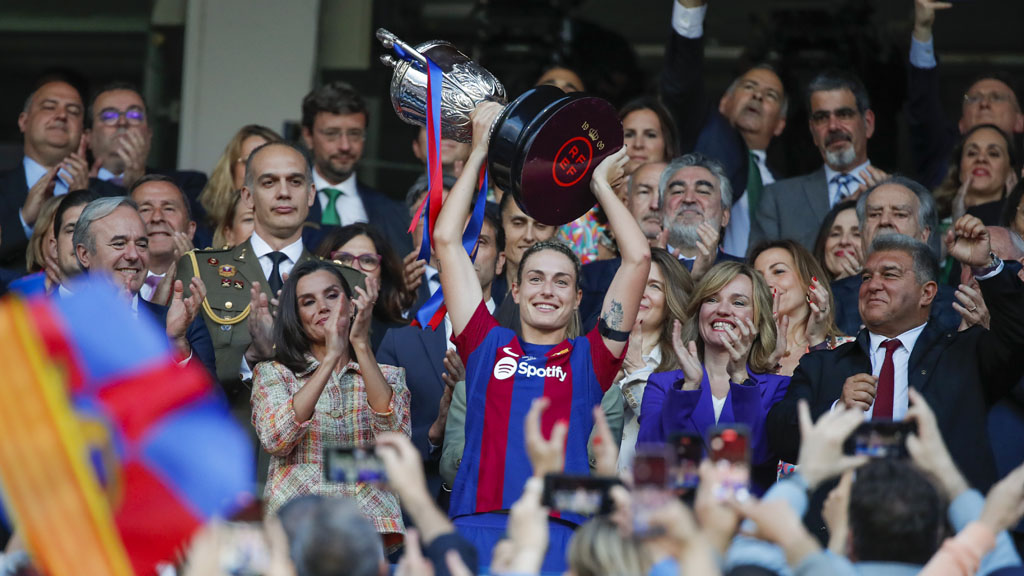 La reina Letizia hizo entrega del trofeo a Alexia Putellas en el palco, para bajar a celebrar con sus compañeras otro éxito de un Barça insaciable. Con poco tiempo para fiestas, las de Giráldez apuntan ahora a la defensa de la Champions en su quinta final de los