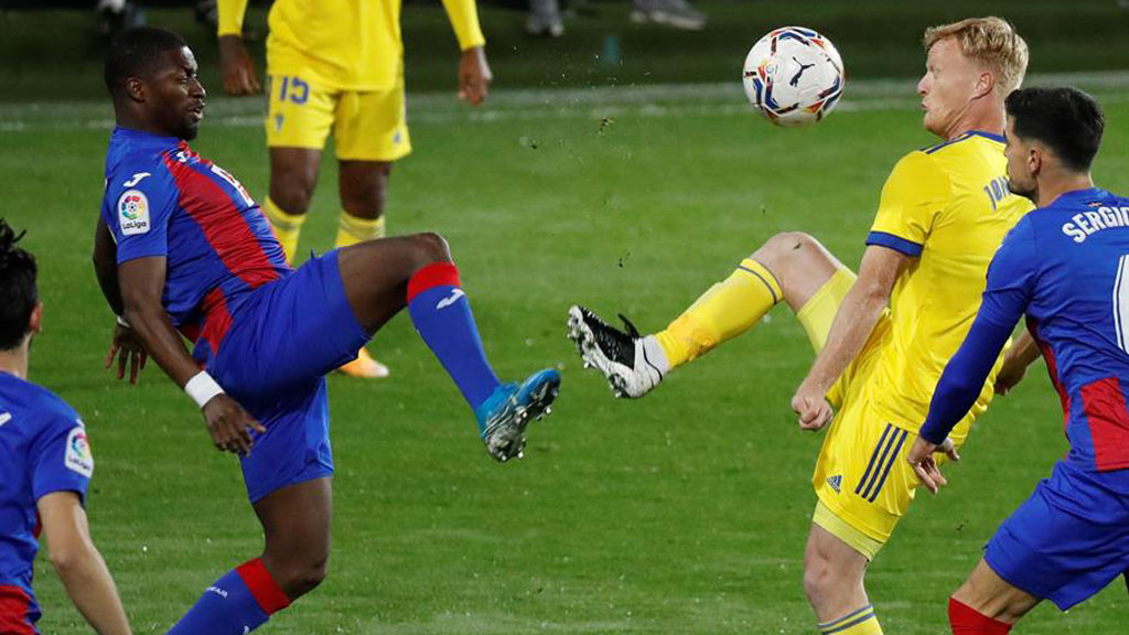 Tres minutos después del primer croché gaditano llegó el 0-2 que hundió anímicamente al Eibar en otra acción con Diop como protagonista. El senegalés habilitó con su error a Negredo y éste asistió a Salvi en el costado diestro para que acabase definiendo con un zapatazo inapelable para Dmitrovic. El Cádiz seguía imponiendo su ley.