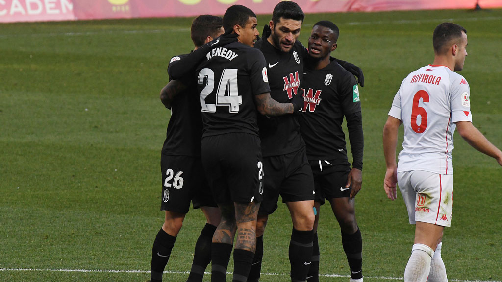 2.- Granada CF: Aarón; Vallejo, Nehuen, Pepe (Foulquier, M. 60); Azeez (Montoro, M. 70), Yan Eteki (Herrera, M. 91), Neva; Soro, Fede Vico (Luis Suárez, M. 70), Kenedy (Darwin Machís, M. 60) y Molina.
