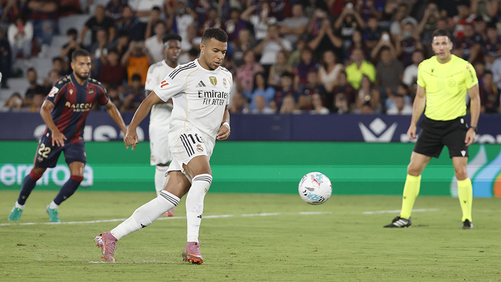 Este tanto instauró el estado de alerta en el conjunto merengue, que pasó malos minutos, con el Levante mucho más volcado y con fe en, como hicieron ante el Barça, arañar algún punto, pero esto se tradujo en mayores opciones de contragolpe para los blancos. Y en uno de estos, Mbappé entró al área y recortó a Unai Elgezabal y este le derribó cometiendo penalti. El francés no falló desde los once metros con un lanzamiento a lo 'panenka'.