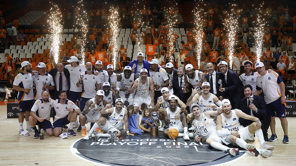 El desenlace no tuvo intríngulis y el cronómetro se consumió sin susto alguno para un Real Madrid que, en cuanto sonó el bocinazo del pabellón, empezó a celebrar esta nueva conquista de la Liga ACB. El bando 'taronja', mientras tanto, digirió esta tercera derrota en la eliminatoria final sin haber puesto un broche de oro a la Fonteta antes de mudarse al Roig Arena.
