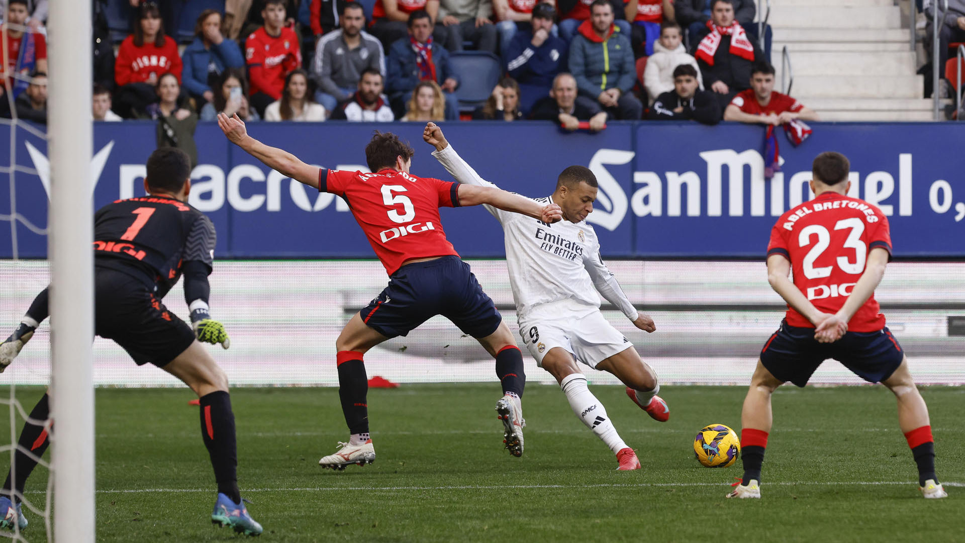 En El Sadar, los de Carlo Ancelotti consiguieron abrir el marcador a los 15 minutos con un tanto de Kylian Mbappé en una primera parte en la que solicitaron hasta tres penaltis y donde la expulsión del centrocampista inglés marcó el curso del partido. Al poco de reanudarse el choque, los navarros lograron empatar desde el punto de penalti gracias a un Ante Budimir que se convirtió en el máximo goleador histórico de Osasuna en Primera.