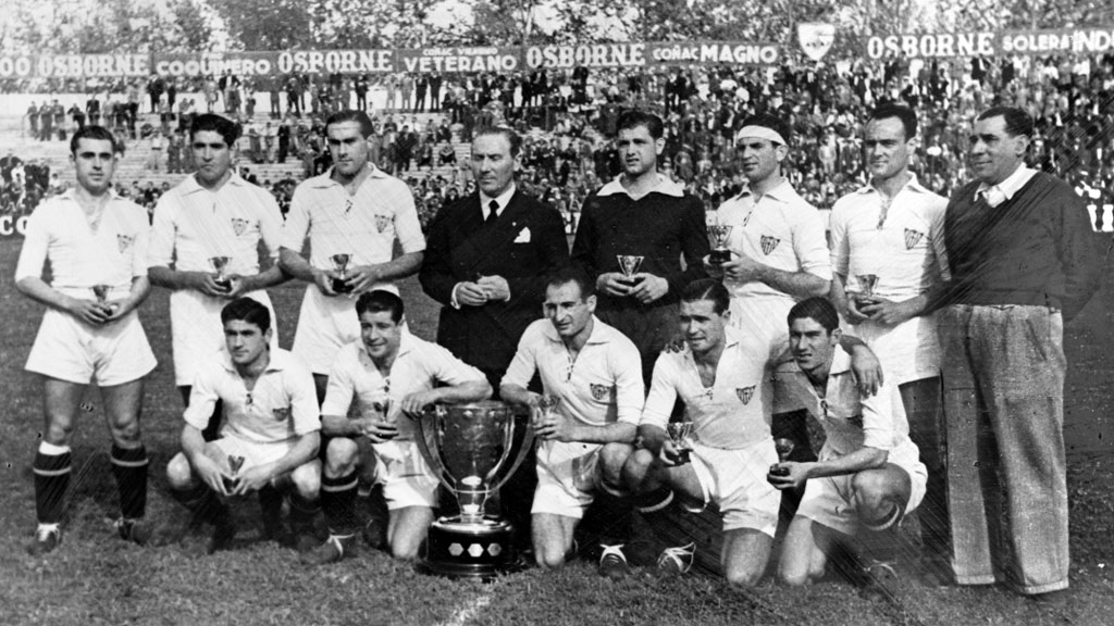 El Sevilla conmemora este miércoles el septuagesimoquinto aniversario de su única Liga, la conseguida el 31 de marzo de 1946 ante el Barcelona en el viejo estadio de Las Corts al empatar a uno y lograr los 36 puntos que le dieron el campeonato.