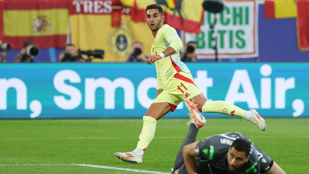 Pese a variar su idea de los dos primeros choques, ante la ausencia de sus dos 'puñales', y de un inicio intenso de Albania que no fue a más, España no tardó en dominar ni en abrir el marcador por medio de uno de sus mejores goleadores como es Ferran Torres. Tras dos avisos en forma de cabezazos de Mikel Merino y Joselu, Dani Olmo, en su posición favorita de '10', filtró un gran pase al valenciano que definió con calidad y cruzado ante Strakosha.