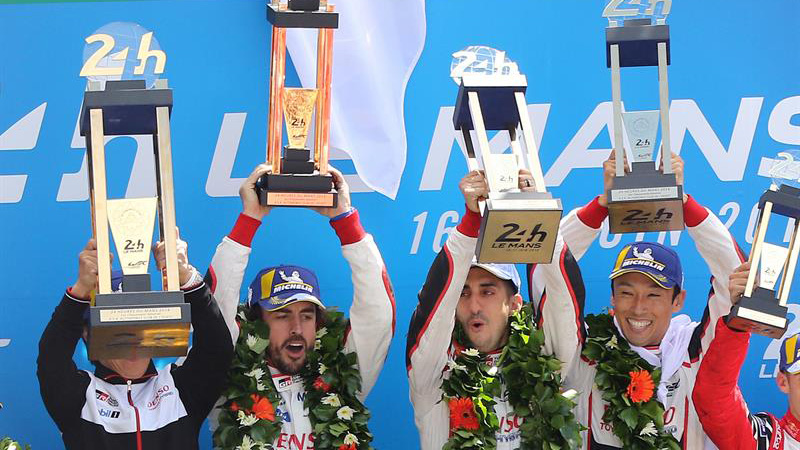 El piloto español Fernando Alonso ha ganado este domingo las míticas 24 Horas de Le Mans, 'la madre de todas las carreras', después de acabar con el equipo Toyota Gazoo Racing en la primera posición de una prueba donde ha competido a relevos junto al suizo Sebastien Buemi y el japonés Kazuki Nakajima.
