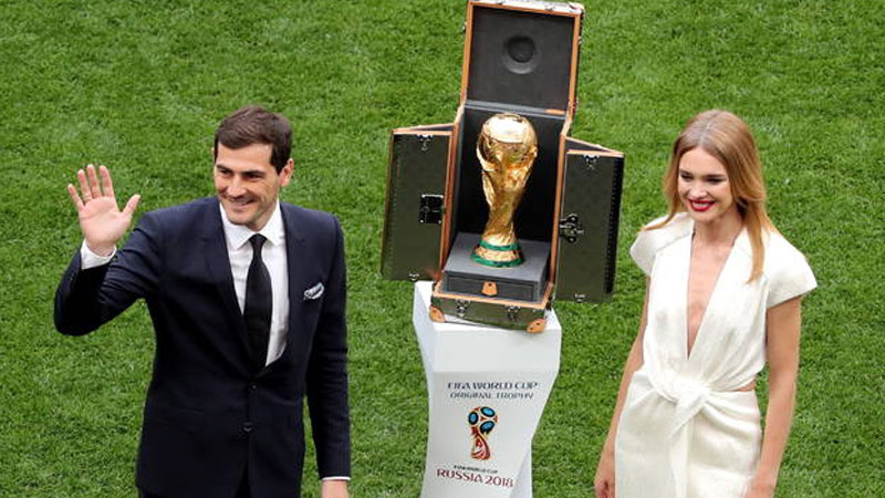 Casillas, que estuvo acompañado de Natalia Vodiónova, la modelo rusa más internacional y que es conocida por sus actividades filantrópicas, levantó la copa como hiciera hace ocho años en el Soccer City de Johannesburgo. Ronaldo, el brasileño que ganó la Copa Mundial en 2002 dio el simbólico saque inicial junto a la mascota del torneo, Zabivaka.