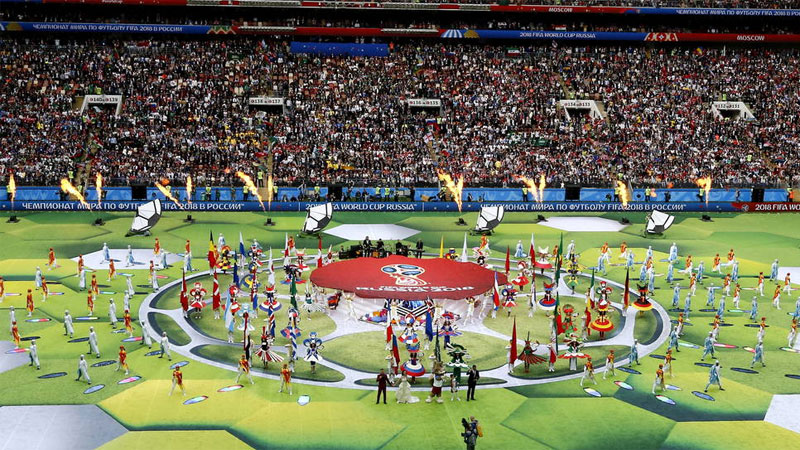 El estadio Luzhnikí, con capacidad para 81.000 espectadores, fue el escenario elegido para iniciar el Mundial. Tras la ceremonio cmenzó el partido entre el anfitrión, Rusia, y Arabia Saudí.