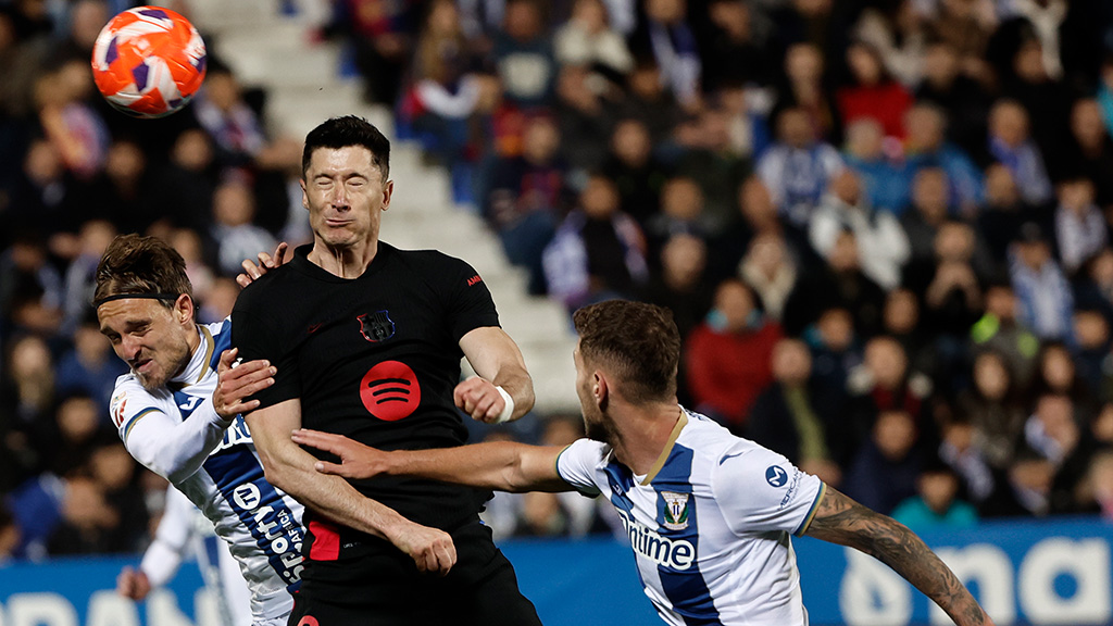 En lo que Flick realizaba los ajustes necesarios, la brecha que dejó la ausencia del lateral quiso explotarla todo lo que pudo el Leganés. Por ello los últimos cinco minutos hasta el paso por vestuarios fueron de acoso sin derribo con Raba de estilete, enviando una desviada por poco tras una arrancada kilométrica y quedándose cerca de rematar en buena posición una entrega de Altimira.
