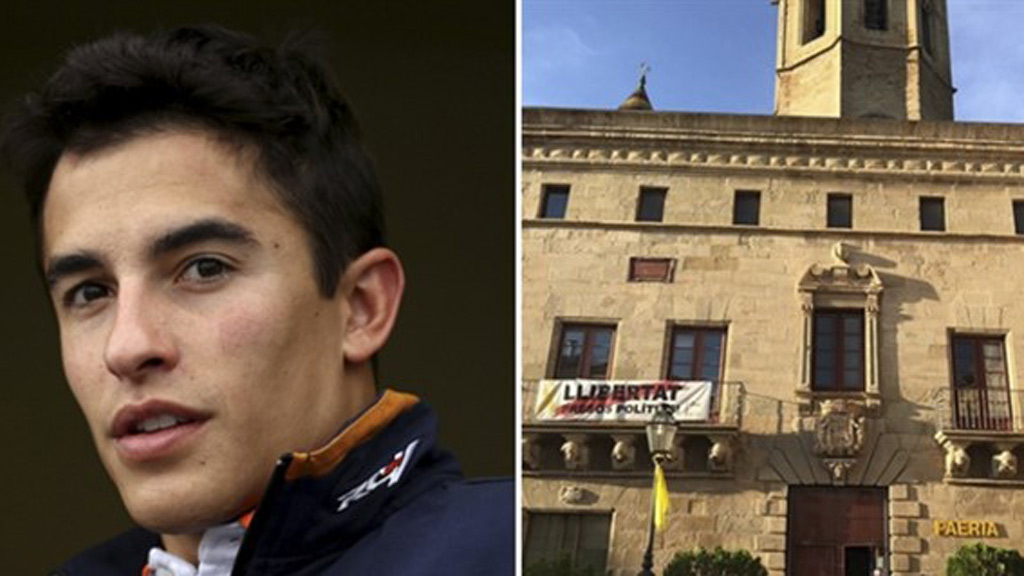 El pentacampeón del mundo de MotoGP Marc Márquez (Repsol Honda) no saldrá este sábado al balcón del Ayuntamiento de Cervera, su ciudad, en los actos de celebración de su nuevo título, porque el consistorio no retirará del edificio el cartel de apoyo a los políticos catalanes presos, ha explicado el alcalde, Ramon Royes (PDeCAT).
