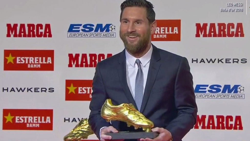 El astro argentino, que ya conquistó el galardón en las campañas 2009-10, 2011-12, 2012-13 y 2016-17, recibió el trofeo tras lograr 34 goles en La Liga. El egipcio del Liverpool Mohamed Salah (32) y el inglés del Tottenham Harry Kane (30) fueron los dos futbolistas que quedaron inmediatamente por detrás de él.