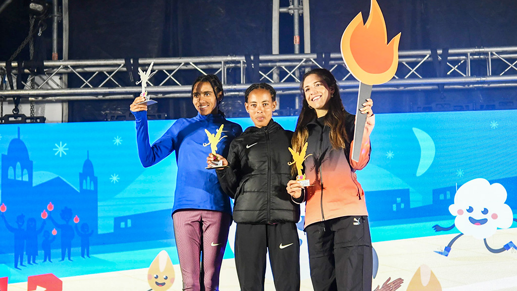 Mekedes Alemeshete, subcampeona del mundo sub 20 de 5.000 metros, venció en mujeres al imponerse a su compatriota Alemnat Walle en un esprint final después de haber corrido juntas toda la carrera.