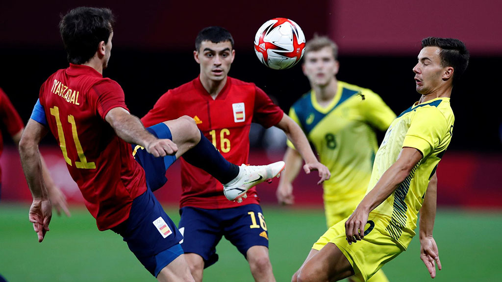 De igual forma que en su debut contra Egipto, España se quedó con el balón contra la sorprendente Australia, que derrotó (2-0) con holgura a Argentina, aunque tan solo se tradujo en un disparo al larguero de l omnipresente Oyarzabal en la primera parte.