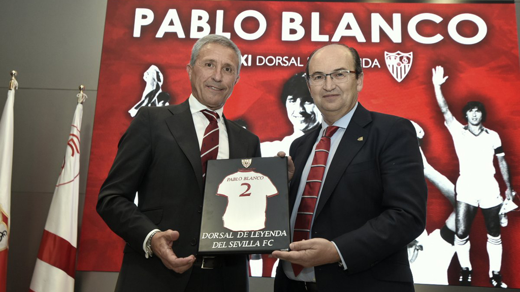 "Pablo es nuestro escudo. Hoy se le reconoce su entrega durante cinco décadas al club y su sacrificio y pundonor defendiendo los colores del Sevilla", dijo el presidente, tras lo que Blanco mostró su gratitud y su "alegría tremenda, imposible de medir".