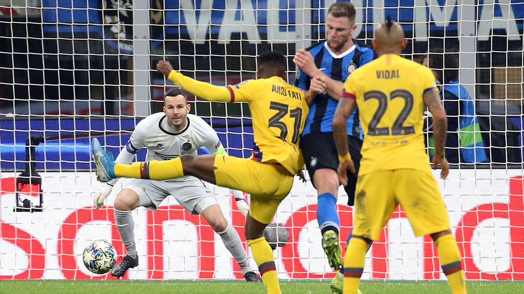 El Inter acabó volcándose completamente al ataque y concedió muchos espacios al contragolpe ante un Barcelona en el que saltó al campo Ansu Fati en el minuto 85. Y el talento barcelonista tardó menos de 180 segundos en marcar en uno de los estadios más gloriosos de la historia del fútbol. Lo hizo con una gran pared con Suárez y un disparo ajustado a un poste que silenció a la afición interista.