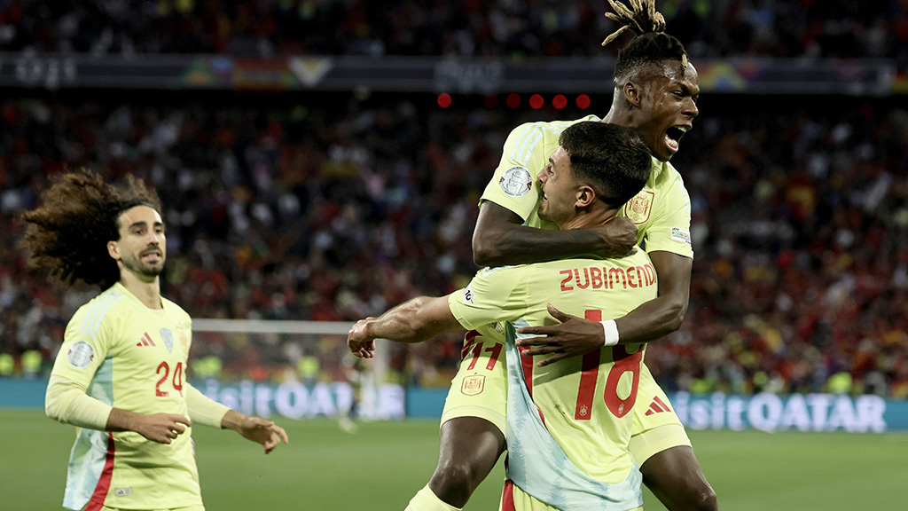 2 - España: Unai Simón; Mingueza (Pedro Porro, m.93), Le Normand, Huijsen, Cucurella; Zubimendi, Fabián (Mikel Merino, m.75), Pedri (Isco, m.75); Lamine Yamal (Yeremy Pino, m.106), Nico Williams (Álex Baena, m.93) y Oyarzabal (Morata, m.111).