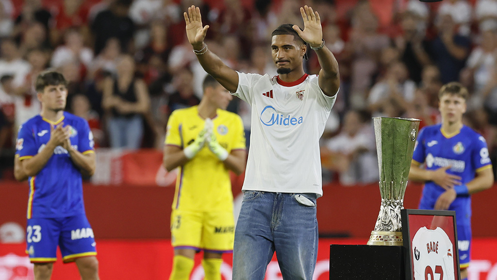 El central francés Loïc Badé, traspasado al Bayer Leverkusen alemán, recibió momentos antes del partido un homenaje del club hispalense y fue aclamado por los aficionados que se reunieron en las gradas del estadio de Nervión. El defensa, que estuvo acompañado por el trofeo de campeón de la Liga Europa ganada por el Sevilla en 2023 al Roma en Budapest, de la que el internacional galo fue uno de los protagonistas, recibió el pasillo de honor de los que hace pocos días fueron sus compañeros.