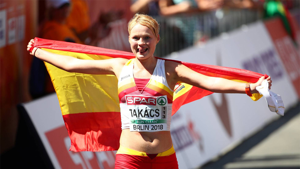 La atleta española Julia Takacs ha conquistado este martes la medalla de bronce en la prueba de 50 kilómetros marcha de los Campeonatos de Europa de atletismo, que se disputan del 6 al 12 de agosto en Berlín, en una competición en la que la portuguesa InÛs Henriques se proclamó campeona continental en el estreno de la distancia en un Europeo.