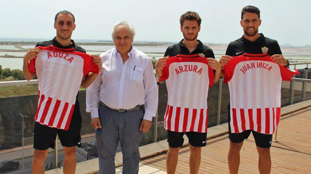 Los centrocampistas Sergio Aguza y Joaquín Arzura, y el defensa central Juan 'Ibiza', los tres últimos fichajes del Almería, han coincidido este miércoles en su presentación en la obligación de ser ambiciosos y crecer de la entidad rojiblanca.