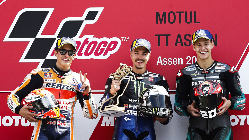 Viñales acabó por delante de Marc Márquez (Repsol Honda RC 213 V), con quien mantuvo una bonita pugna durante algunas vueltas, hasta que el líder del mundial "sacó la calculadora" y decidió no arriesgar más dando por buena la segunda plaza, con el francés Fabio Quartararo (Yamaha YZR M 1), tercero.