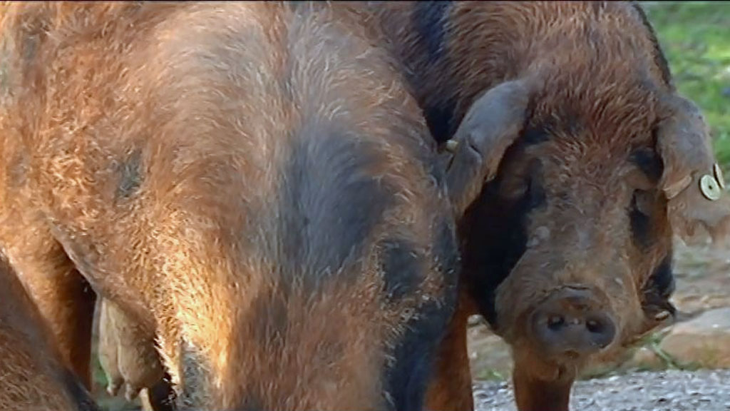 Se trata del cerdo ibérico Manchado de Jabugo, una variedad en peligro de extinción. Sólo queda un centenar de ejemplares repartidos en 12 explotaciones.