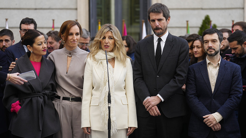 En cuanto a los socios de Gobierno, la líder de SUMAR y vicepresidenta segunda del Gobierno, Yolanda Díaz, ha acusado al bipartidismo que han estado ejerciendo el PP y el PSOE, de haber hecho "un vaciado de la Constitución" durante estos 45 años y ha asegurado que desde Sumar la van a cumplir "íntegramente".