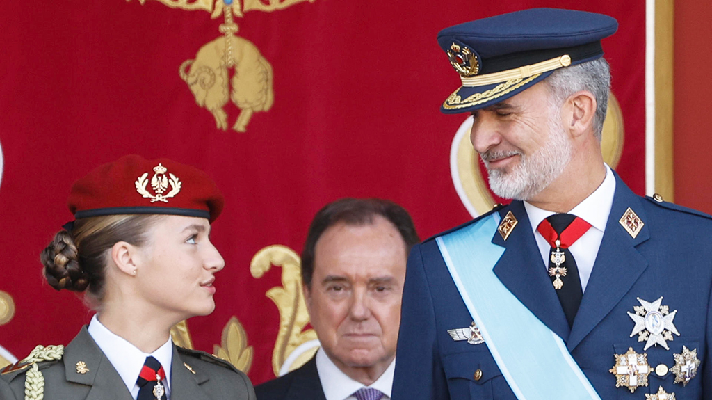 Las miradas cómplices entre padre e hija han sido constantes durante todo el acto, también con su madre. Leonor de Borbón se ha mantenido en pie junto a Felipe VI durante todo el desfile.