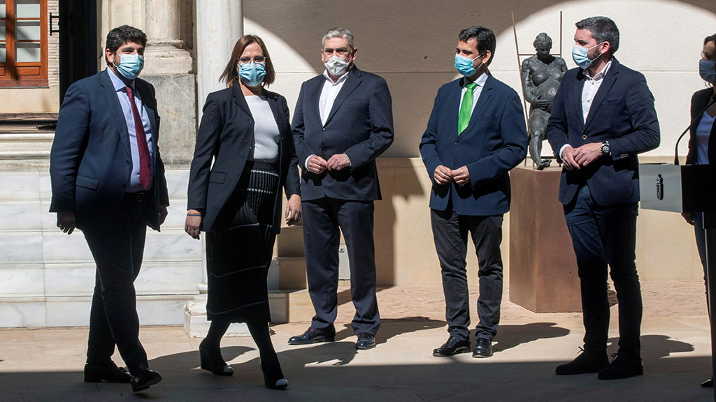 El presidente López Miras comparece con los parlamentarios de Cs, que firmaron la moción y dan marcha atrás.