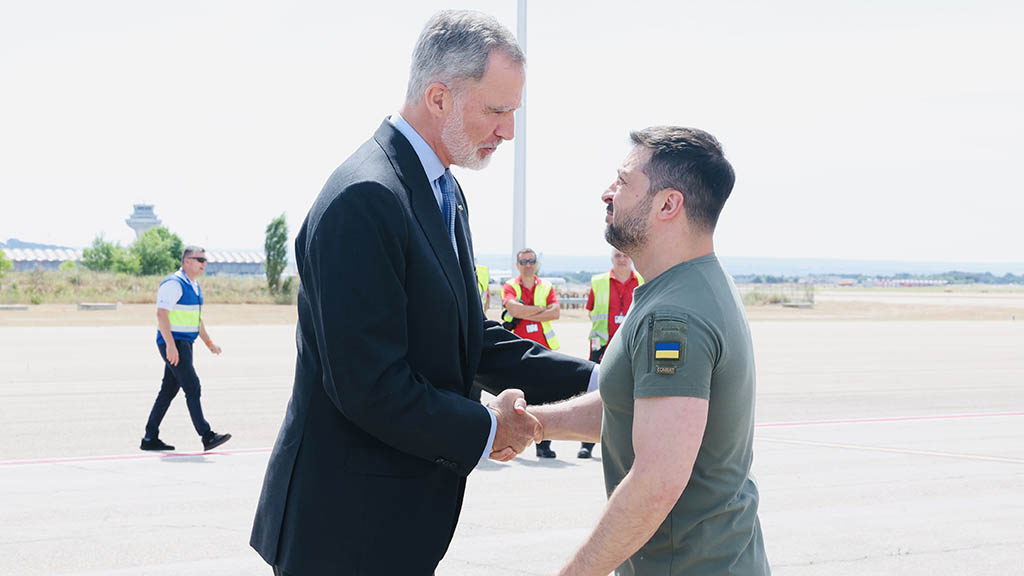 En un gesto inusual de deferencia y para mostrar la importancia que se da a esta visita, Don Felipe se ha trasladado hasta el aeropuerto para recibir en persona a Zelenski, algo que también hizo en su momento, aunque en la base aérea de Torrejón, en junio de 2022 cuando vino el presidente de Estados Unidos, Joe Biden.