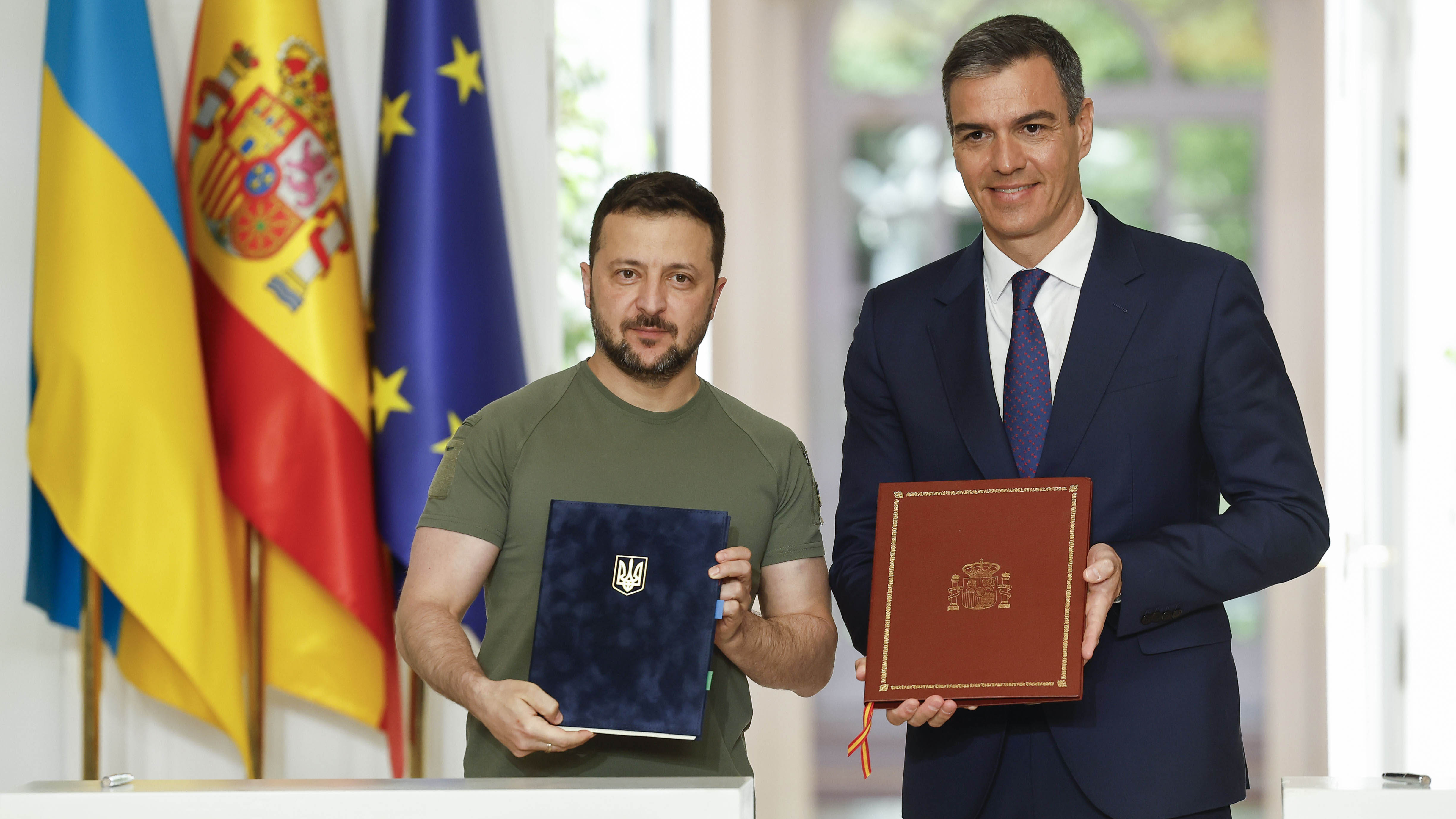 Desde Barajas, Zelenski se ha trasladado al Palacio de la Moncloa, donde se ha reunido con Pedro Sánchez para la firma del acuerdo de seguridad, similar al que han suscrito ya otros países del G7 y europeos con Ucrania.