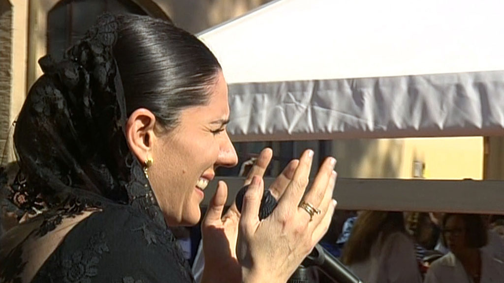 En Días D Andalucía con Domi del Postigo, la malagueña ha interpretado desde su confinamiento una sentida saeta de algo más de cinco minutos al Señor de Málaga, al que este año no podrá dedicarle su habitual oración cantada por culpa del coronavirus.