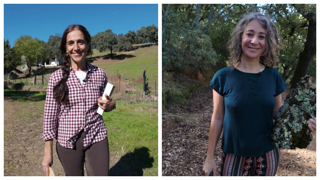 Elena conoció el arte de trabajar el corcho y ahora vive de su pasión en su taller propio en el que elabora artesanía. Estrella es periodista y ha creado un espacio cultural llamado La Dehesa de las Artes.