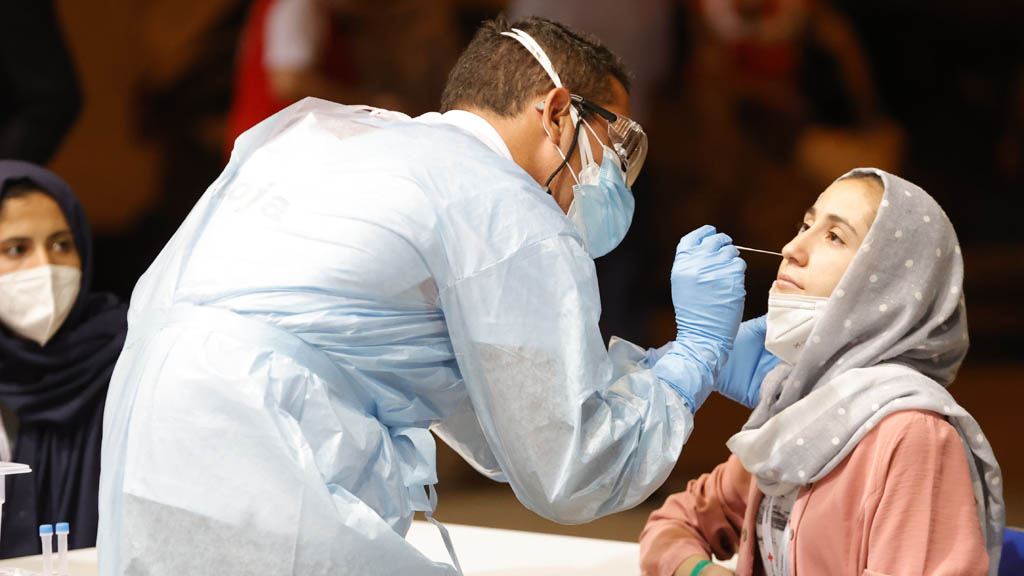 Una mujer afgana se somete a una prueba covid a su llegada a España