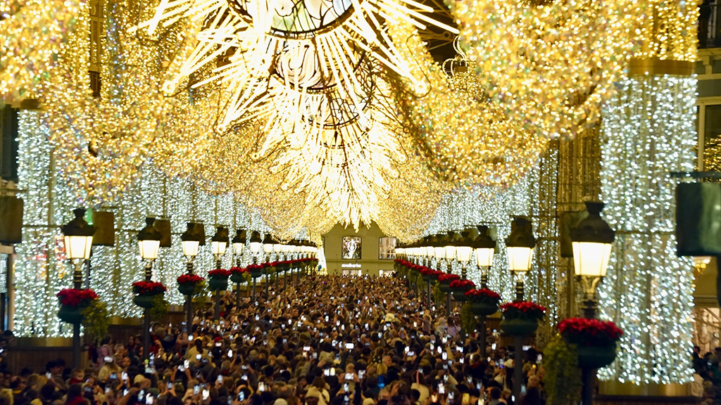 Varios miles de personas han presenciado en una abarrotada calle Larios y sus aledaños el alumbrado navideño, que este año ha tenido como previa una puesta en escena pensada especialmente como parte de 'Imagine', una creación original de Domingo Merlín y Antonio Banderas.