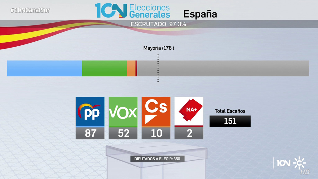 PP, Vox, Ciudadanos y Navarra suma llegan a los 151 escaños