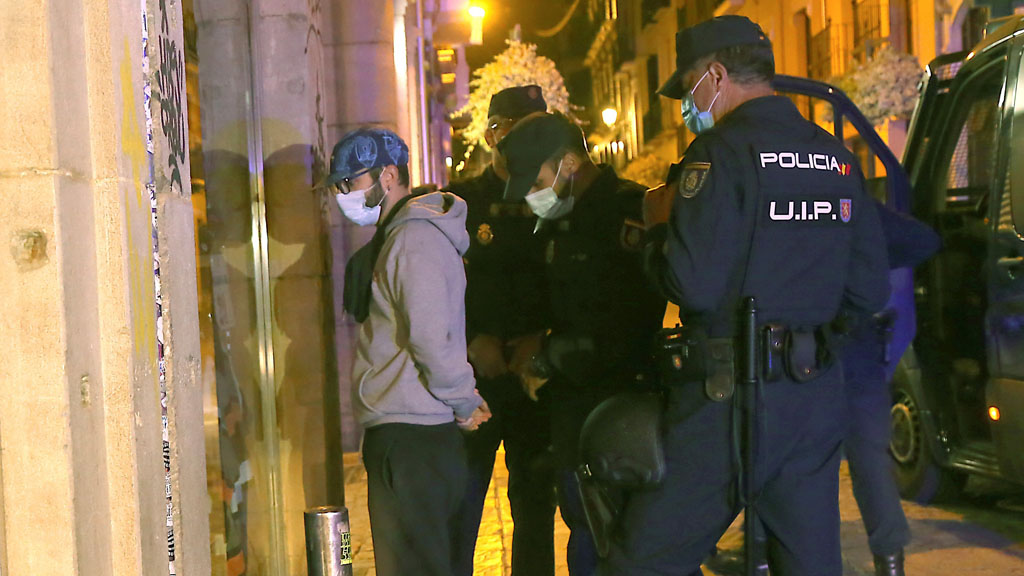 Noche de disturbios callejeros en el barrio malagueño de Huelin y en el centro de la capital granadina contra la imposición del toque de queda por la pandemia del coronavirus.