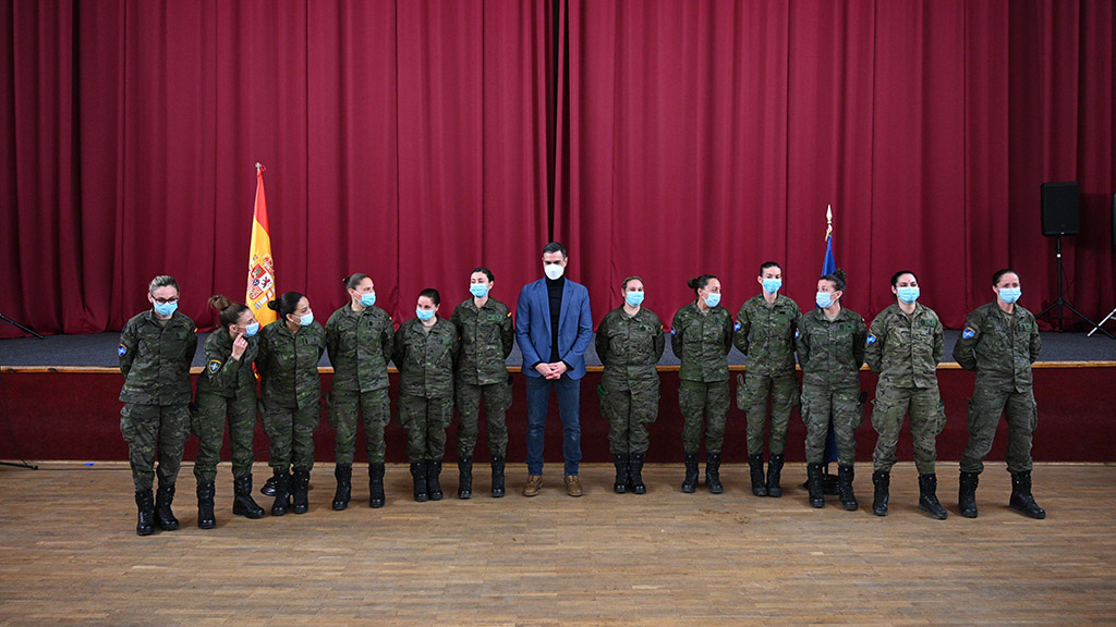 Finalmente, el presidente se ha fotografiado con todas las mujeres militares que forman parte del contingente español, para conmemorar el Día Internacional de la Mujer.