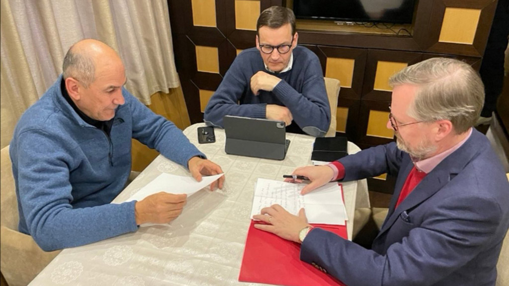 El primer ministro de Polonia, Mateusz Morawiecki, llamó hoy desde Kiev a "poner fin a la tragedia" que está viviendo Ucrania, a su llegada a la capital de ese país junto con sus homólogos de la República Checa, Pietr Fiala, y de Eslovenia, Janez Jansa.