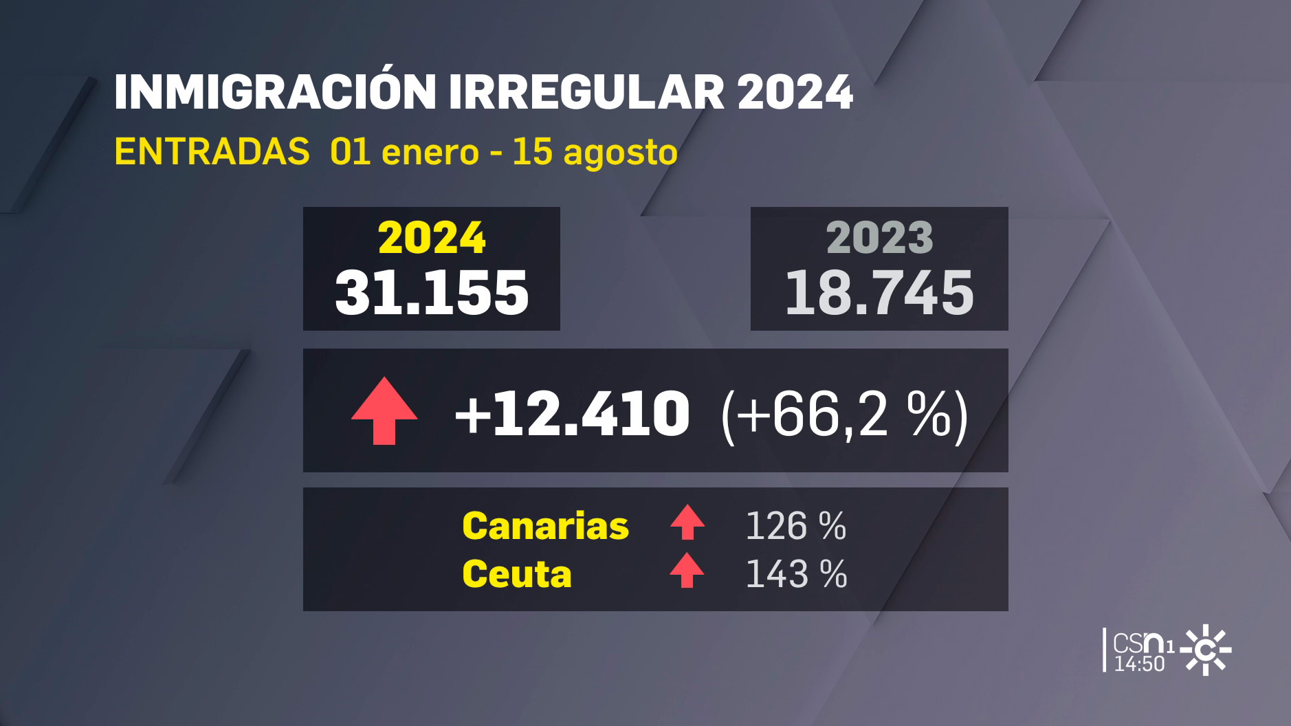 Un total de 31.155 migrantes han llegado a España de forma irregular en 2024, 2.124 en la primera quincena de agosto. España es el segundo país europeo, solo por detrás de Grecia, donde más aumentan estas llegadas.