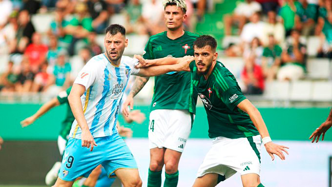 El Málaga se mostró competitivo y ambicioso en su nueva categoría, se puso por delante en dos ocasiones pero finalmente el equipo gallego, uno de lo gallitos de la categoría la pasada temporada, logró rescatar un punto.