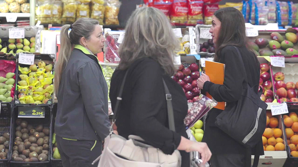 El recorrido con María Pura nos lleva por una calle tradicional donde los vecinos venden los productos que cultivan en sus propios huertos.