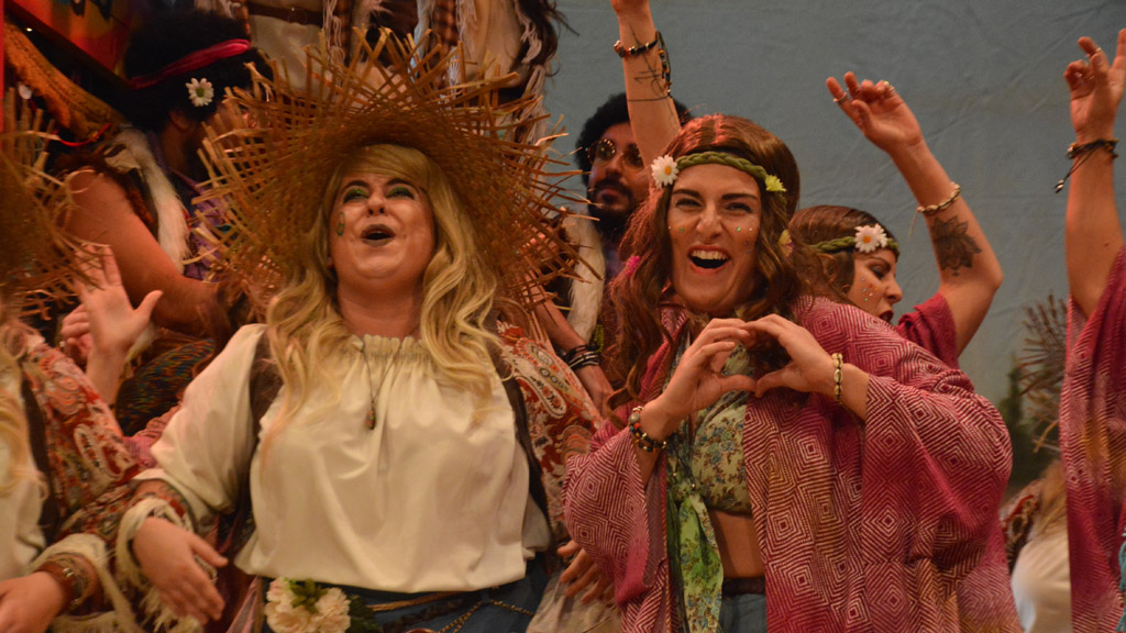 El coro de Los Estudiantes llena el Falla de alegría y buen rollo hippy con "La nueva era"