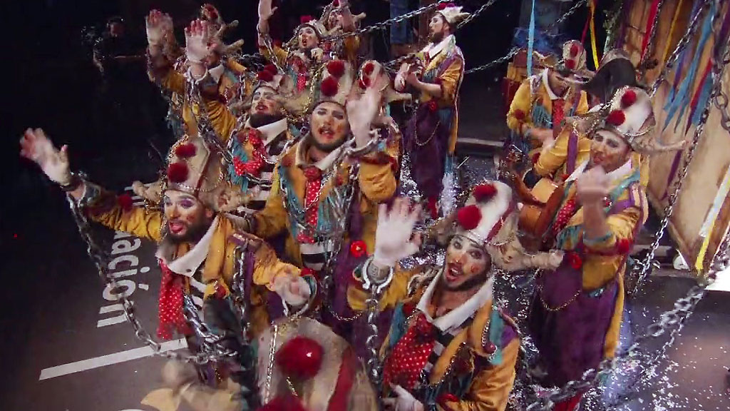 La comparsa de Kike Remolino ha llegado este año por primera vez a Semifinales y a la Final. Y es que la comparsa ha calado y gustado, 'Los encaidenaos' lo sabían y han querido agradecérselo a su público con repertorio nuevo en cada pase.