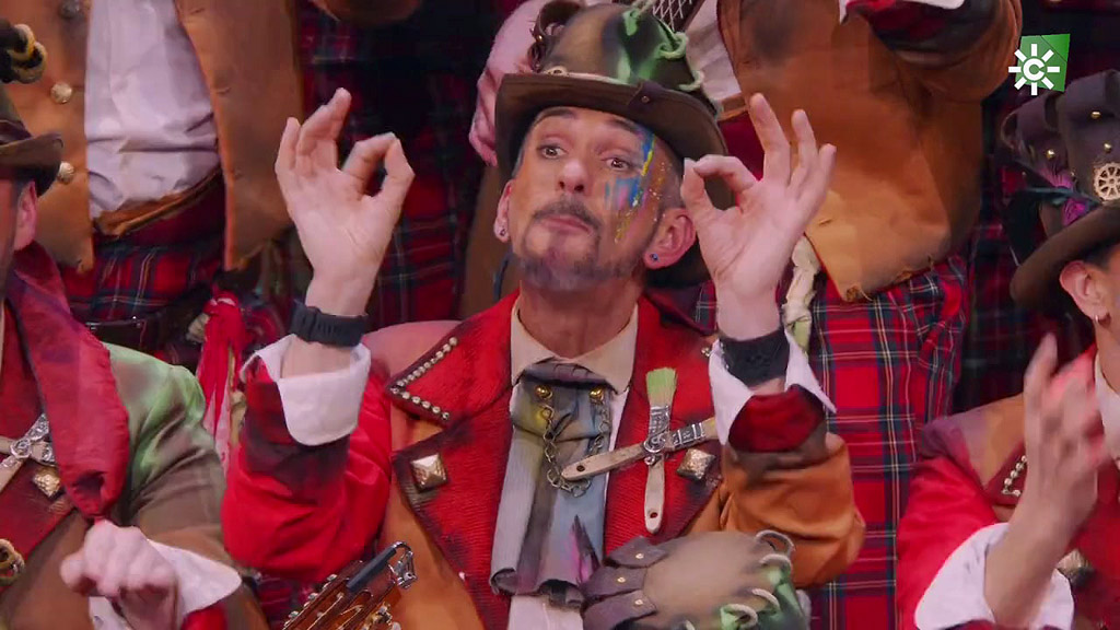 La chirigota de Sevilla viene a defender el segundo premio que consiguió el pasado año y lo hacen como feriantes gitanos de una casa del terror.
