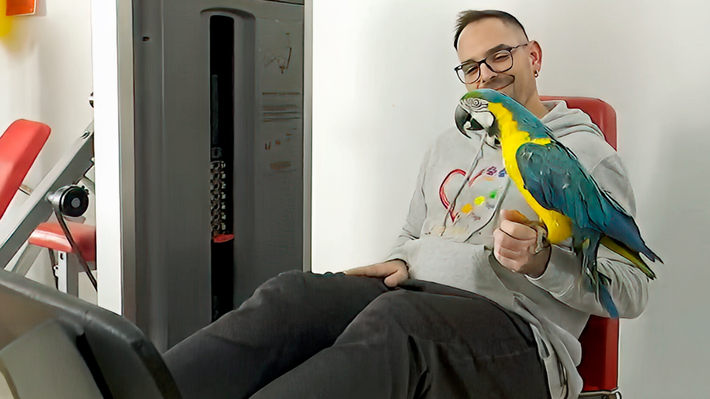 Aunque se llama Laura, es un guacamayo macho... y no es la única peculiaridad de esta ave exótica