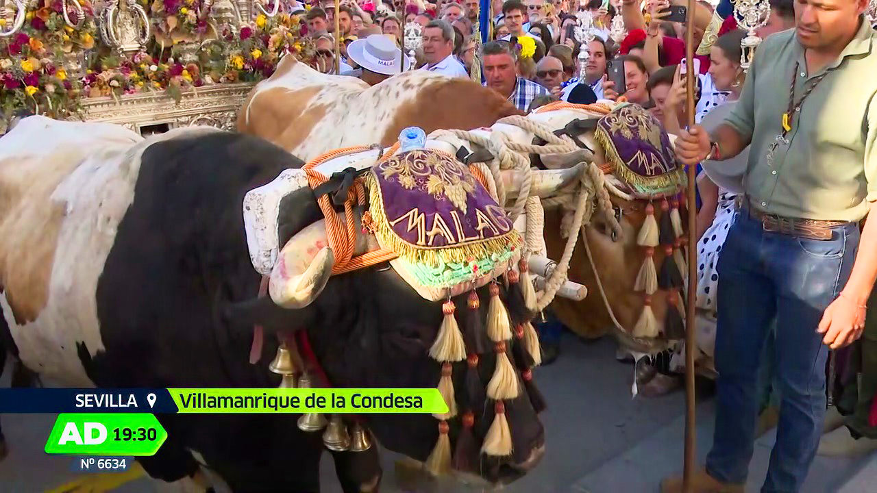 Un equipo de Canal Sur ha estado con la hermandad de Triana, una de las que conserva la tradición histórica de las carretas tiradas por bueyes.