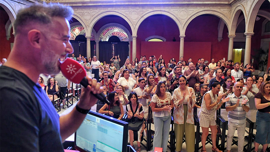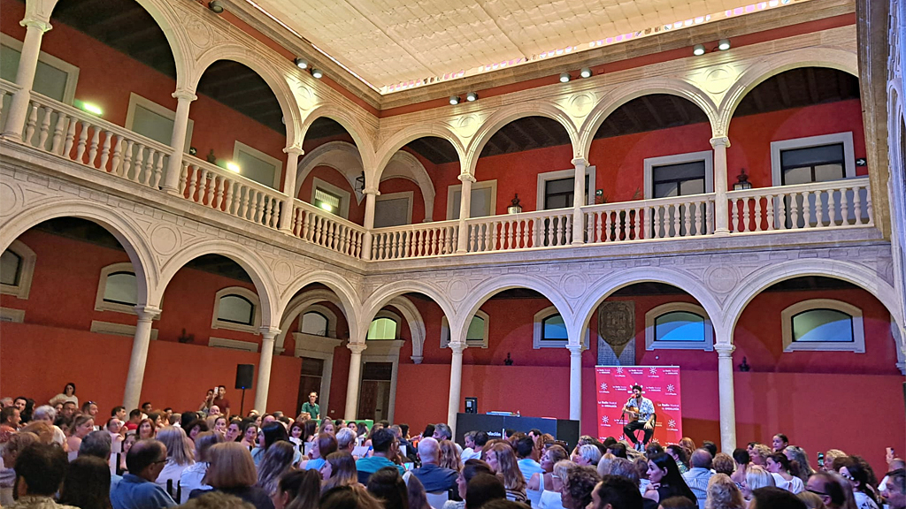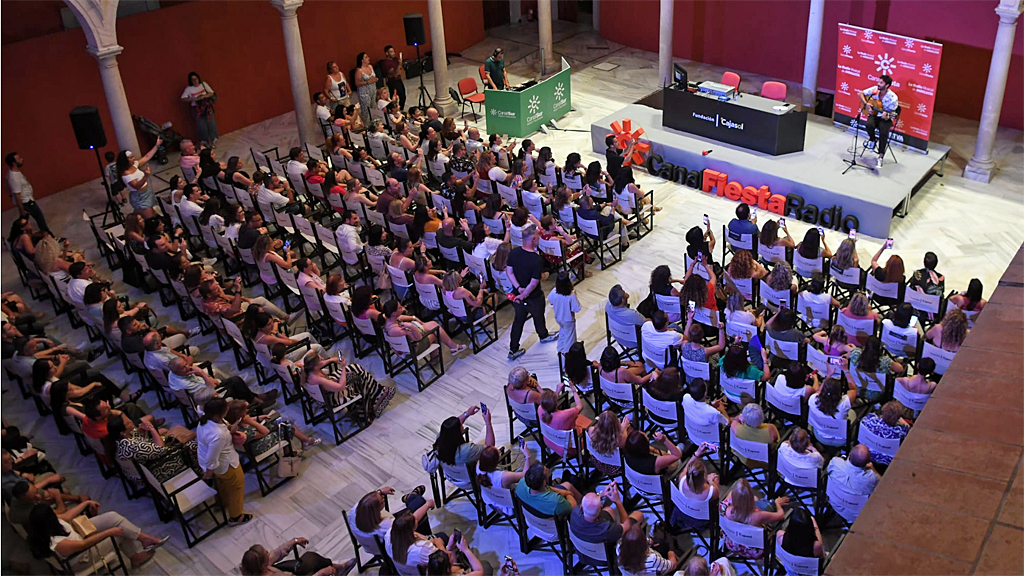 Un abarrotado patio de la Fundación Cajasol de Sevilla ha vibrado de lo lindo con una de las referencias musicales de la temporada, Antoñito Molina, que ha interactuado con la audiencia del Fiesta que se ha dado cita en un evento celebrado la tarde de hoy, 31 de mayo, que ha sido especial y diferente.
