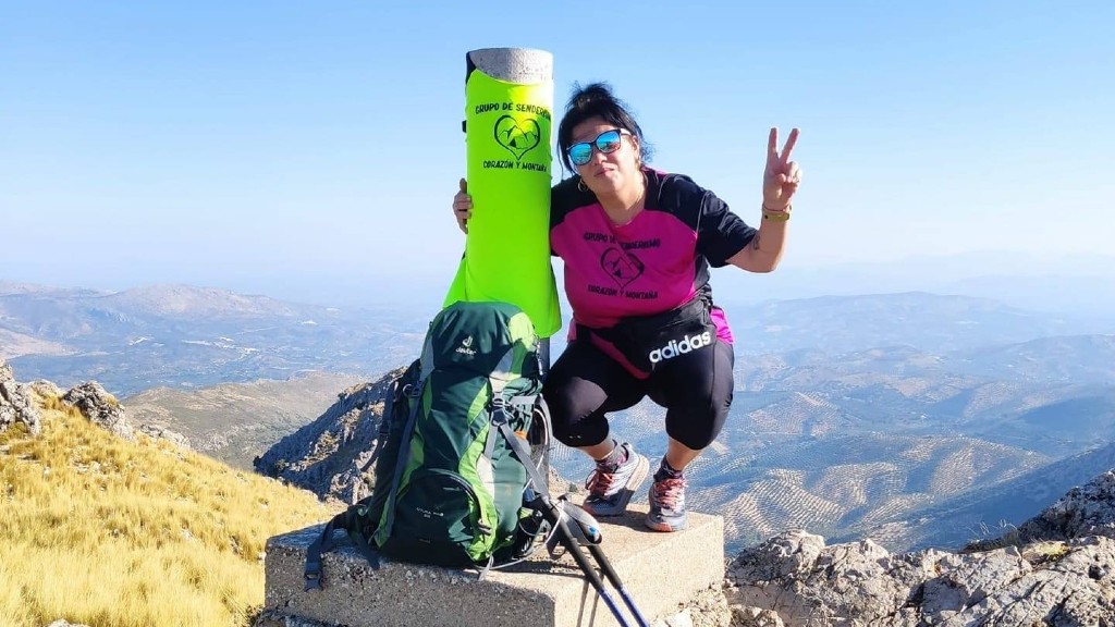 Natural de Montilla (Córdoba), Eva Aguayo padece esclerosis múltiple desde hace doce años. La enfermedad le ha provocado pérdida de fuerza en la mitad de su cuerpo y también graves problemas de visión. Sin embargo, no ha perdido su fuerza mental, que le ha permitido encontrar un trabajo en la ONCE y dedicarse al senderismo, dado que los especialistas le recomendaron caminar como terapia complementaria a su tratamiento médico.