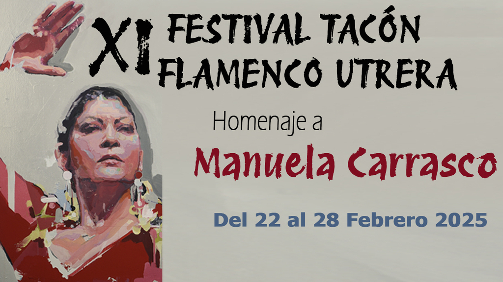 El XI Tacón Flamenco de Utrera se celebrará del 22 al 28 de febrero de 2025. Organizado por la Asociación El Compás que nos une, ésta undécima edición tendrá como gran protagonista a la bailaora sevillana Manuela Carrasco, que será homenajeada.
