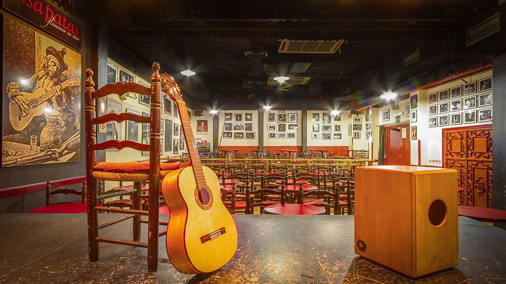 La exposición 'Tablao flamenco’ reúne una colección de obras inspiradas y realizadas en los tablaos flamencos, espacios donde el cante, el toque y el baile flamenco se manifiestan con toda su capacidad emocional y artística. En concreto, el enclave tomado como modelo ha sido el Tablao Flamenco Los Gallos.